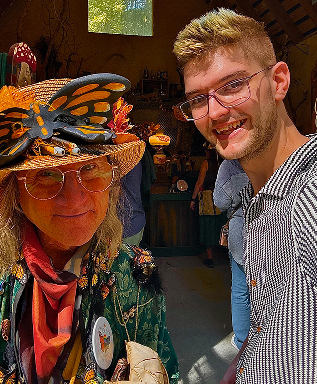 Student and person with a monarch butterfly hat/outfit