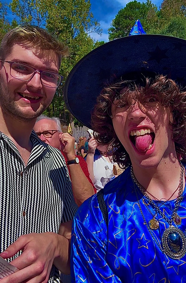 two students, one dressed as a wizard